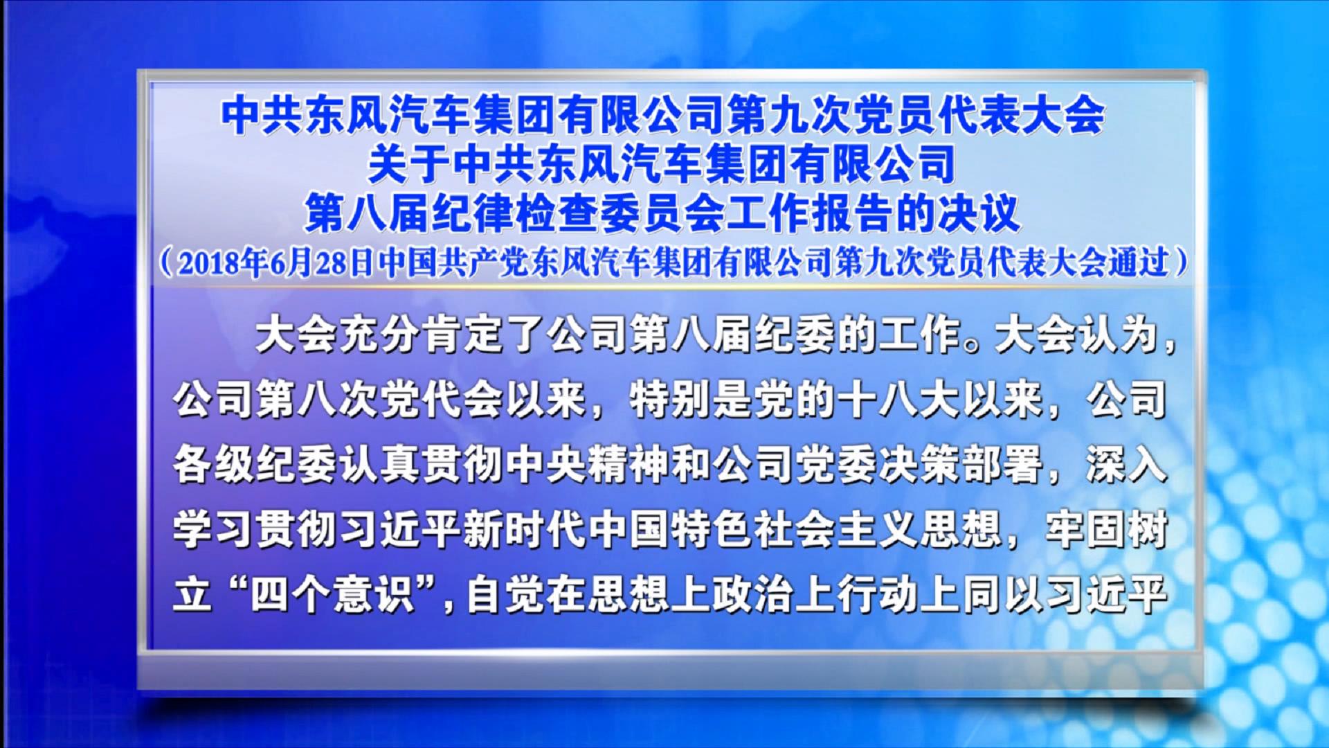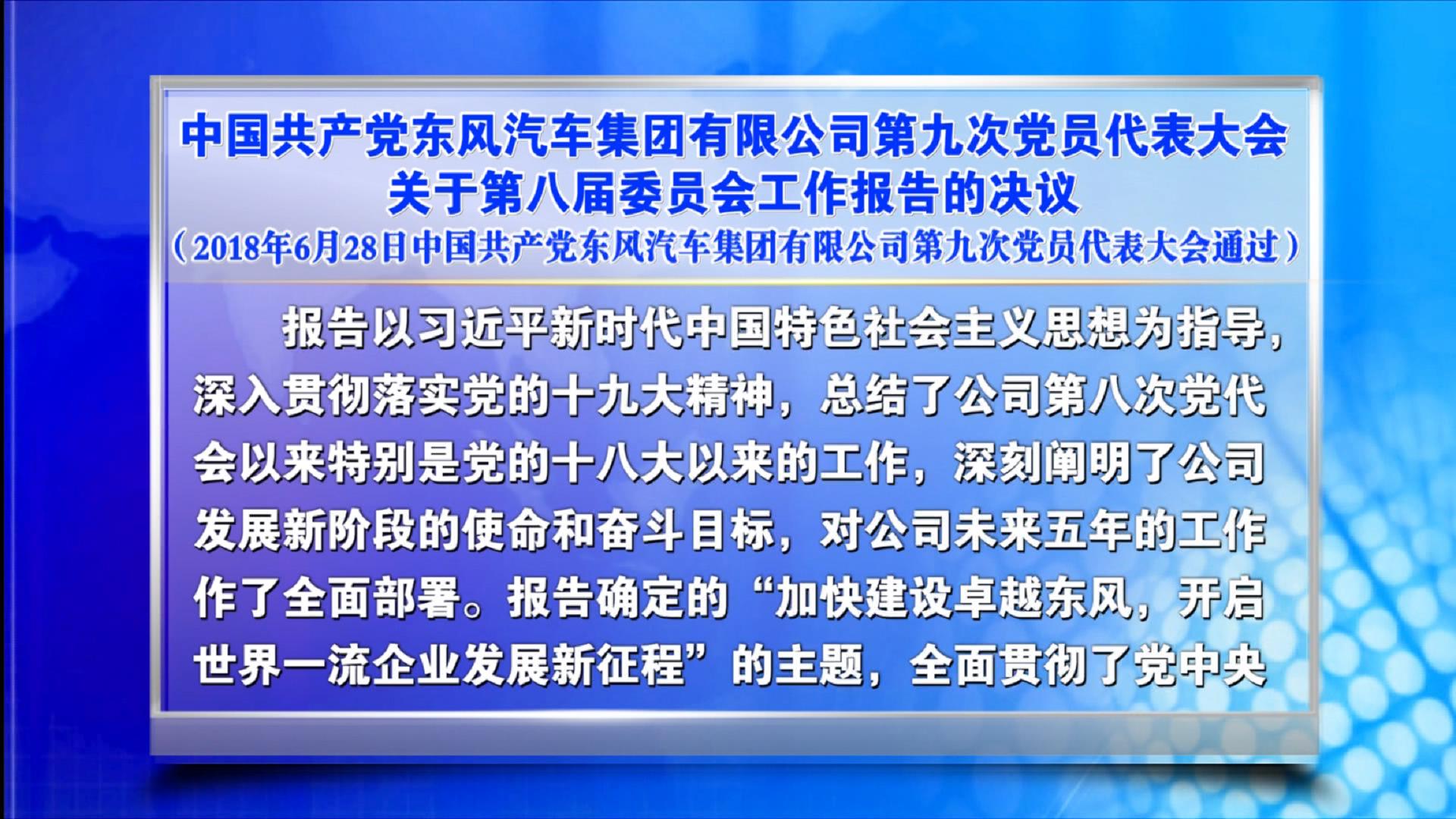 中國共產(chǎn)黨東風(fēng)汽車集團(tuán)有限公司第九次黨員代表大會(huì)關(guān)于第八屆委員會(huì)工作報(bào)告的決議